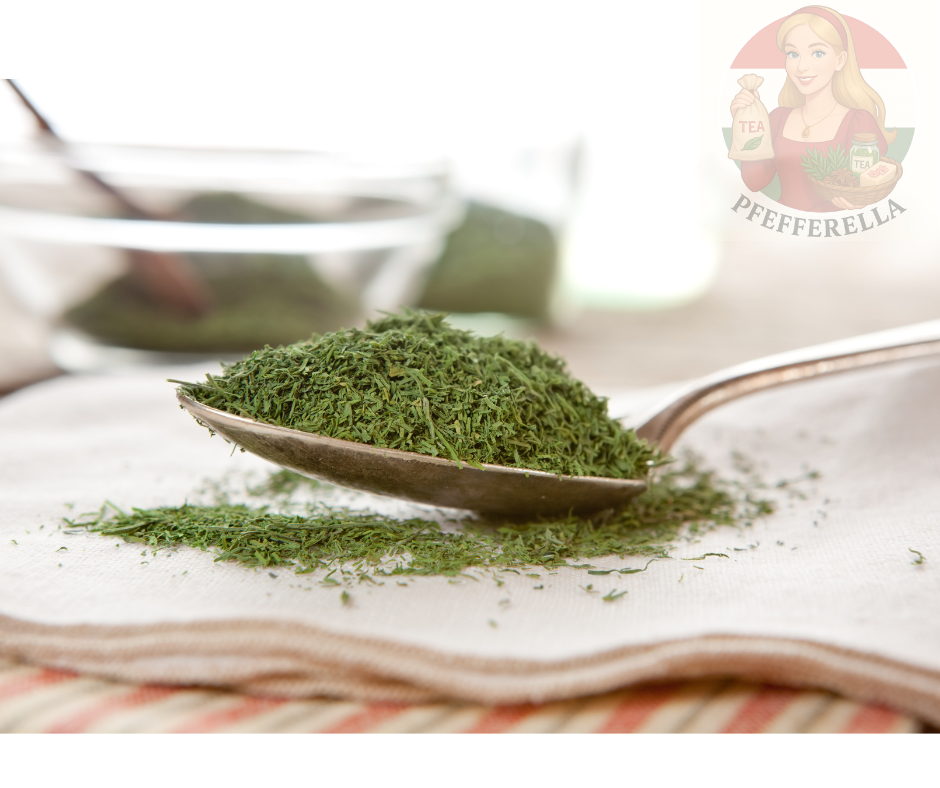 Gesundheitliche Wirkungen: Gegen Blähungen und Schluckauf; Dilltee wirkt beruhigend bei Verdauungsbeschwerden und Nierenerkrankungen. Fördert die Milchbildung bei stillenden Müttern, unterstützt die Produktion von Magensäften und lindert Husten.