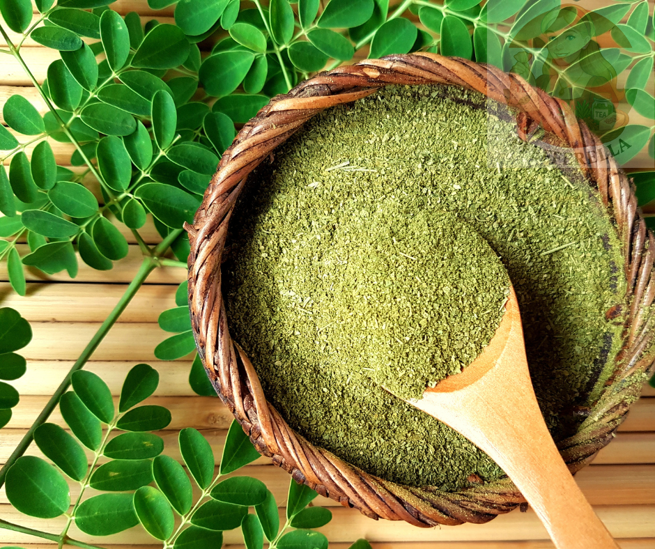 Aussehen und Farbe: Hellgrüne, gemahlene Blätter