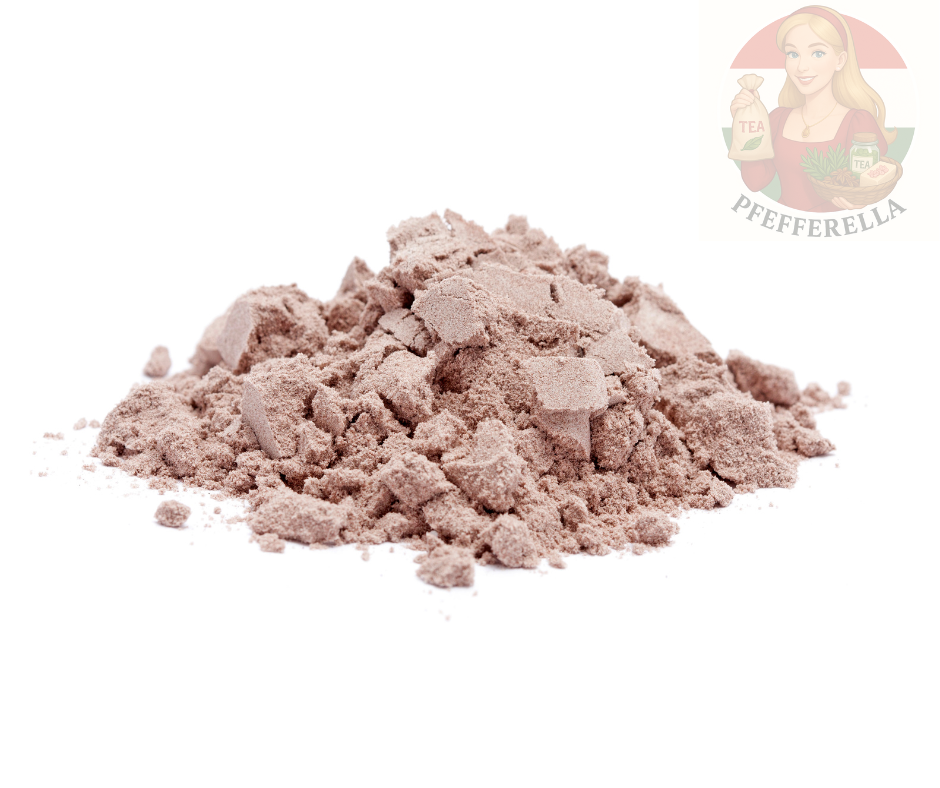 Haselnussbraunes, feines Pulver mit gleichmäßiger, streufähiger Struktur