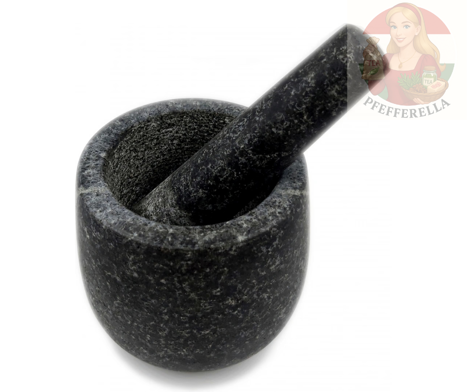 Massiver Steinmörser mit Stößel, ideal zum Zerkleinern von Kräutern, Gewürzen und Zutaten der orientalischen Küche. Ein unverzichtbares Werkzeug für jede traditionelle oder moderne Küche.